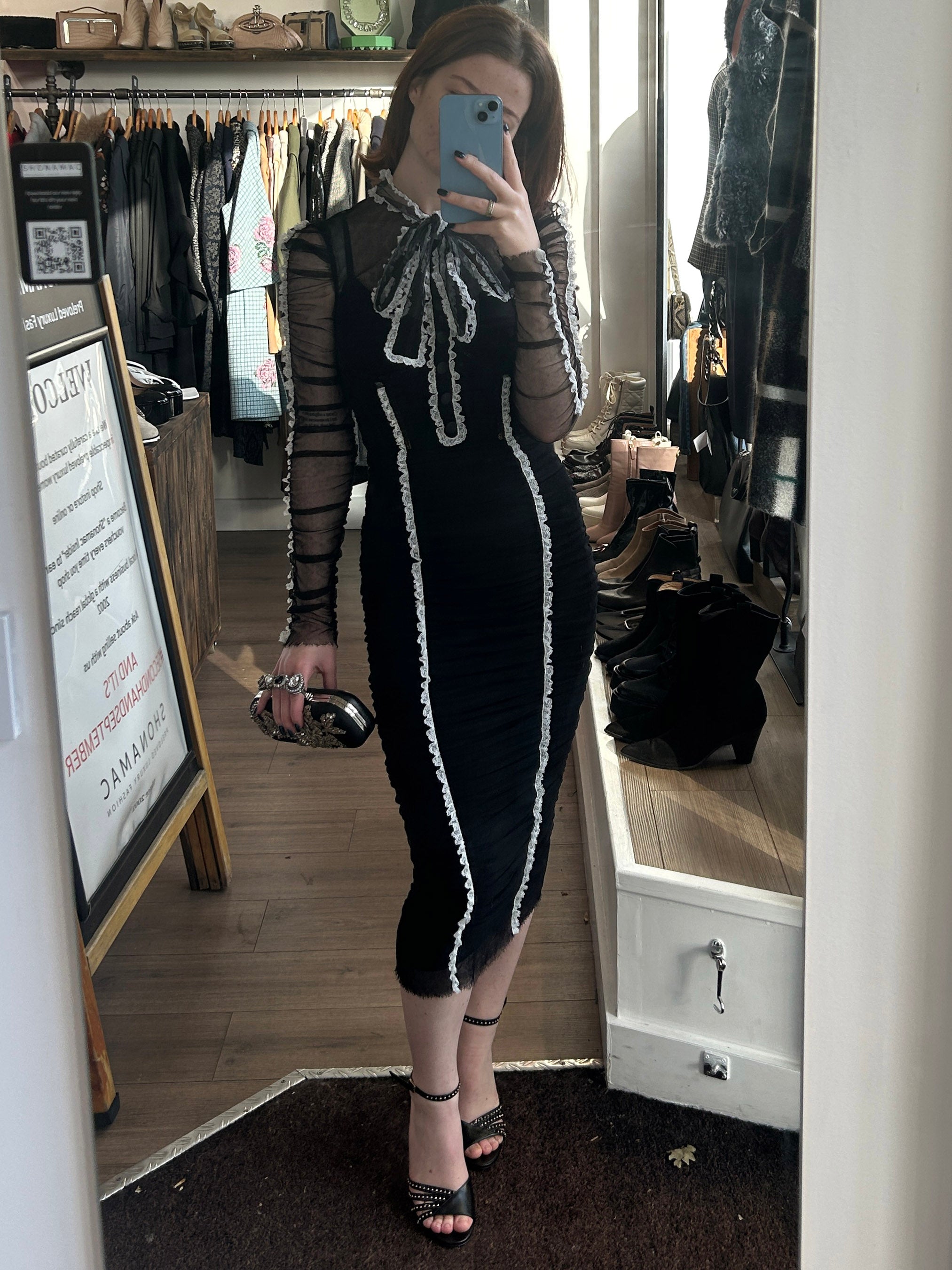 Dolce & Gabbana Black Tulle & Lace Corset Pencil Dress XS