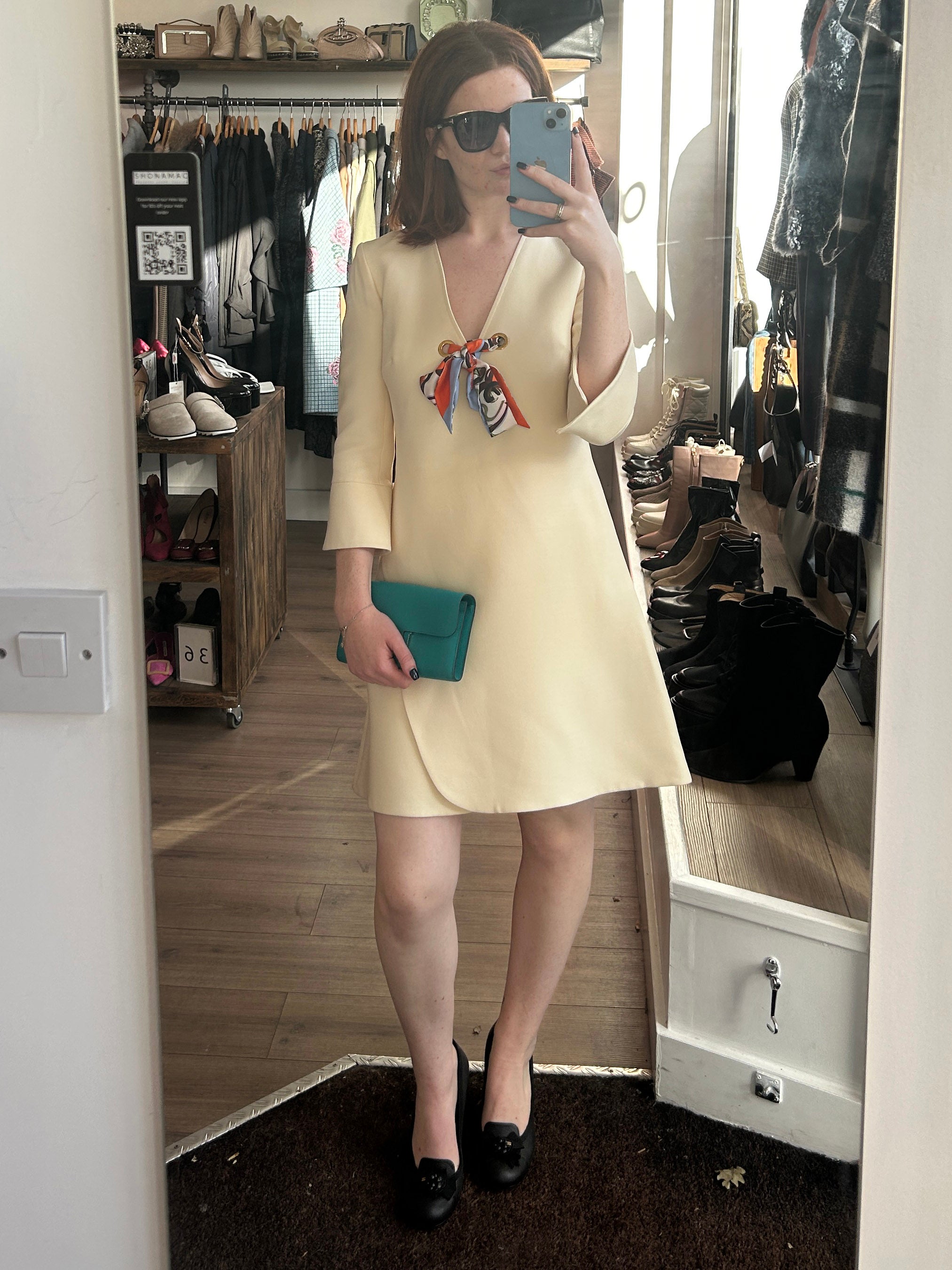 Christian Dior Cream Wool & Silk Mini Dress with Twilly Bow Tie XS