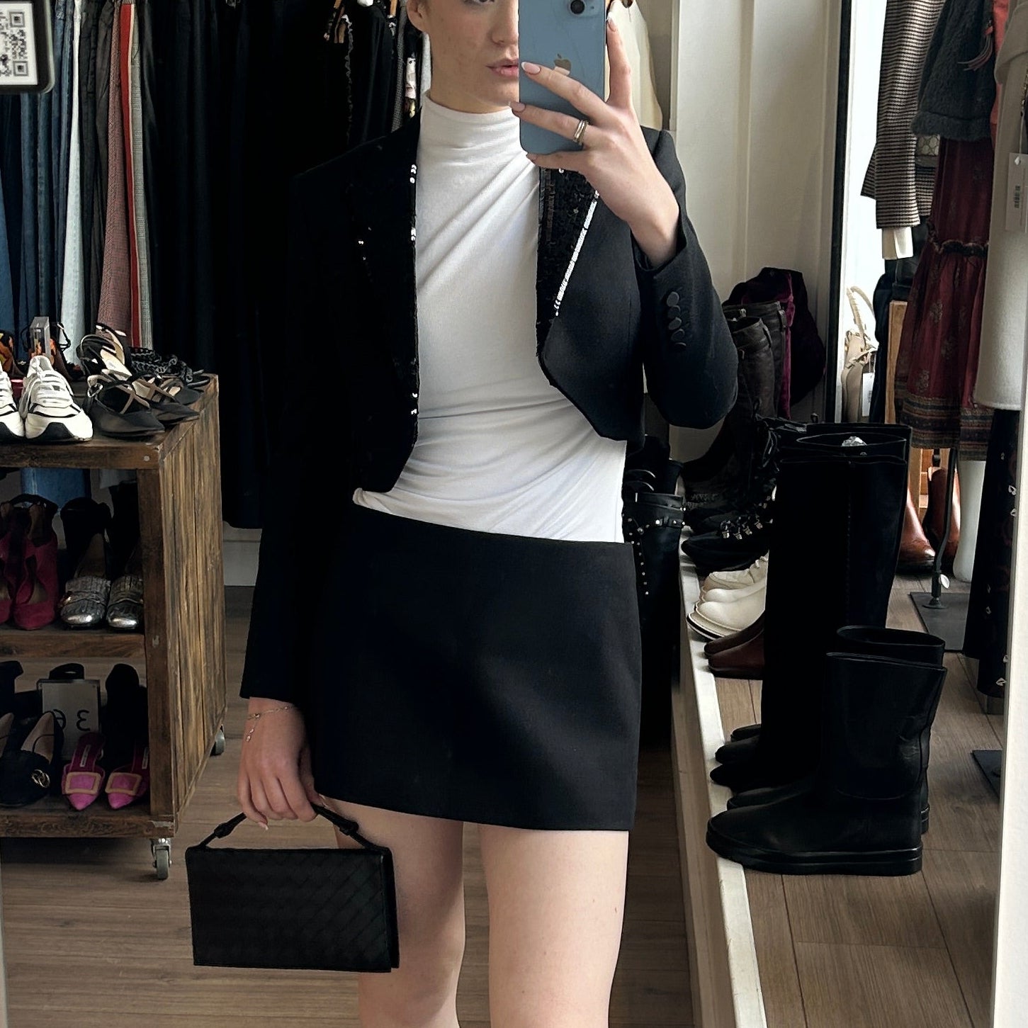 Saint Laurent New Sequin Lapel Wool Crop Jacket XS