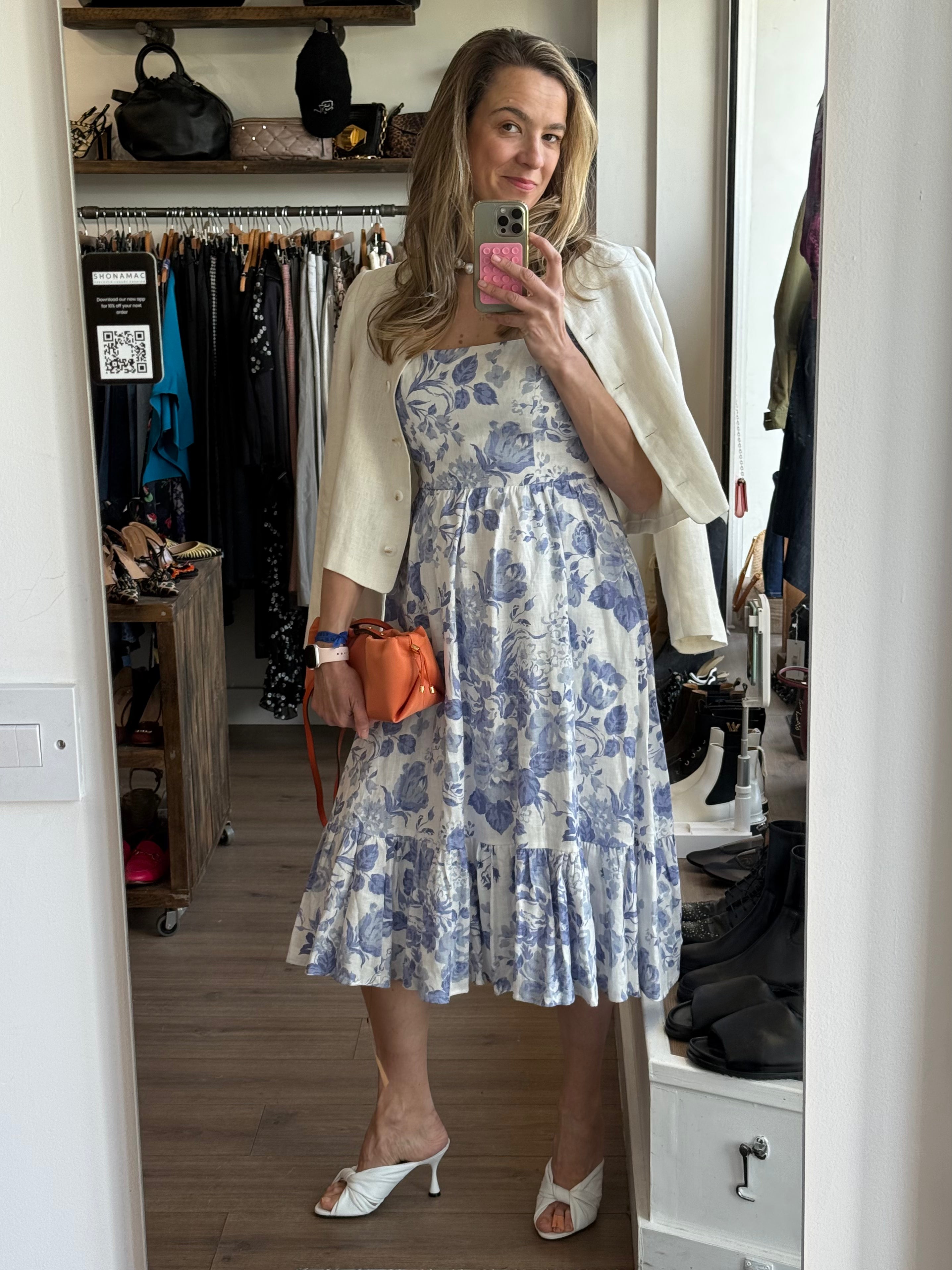 Reformation New China Blue Floral Bucatini Linen Dress S