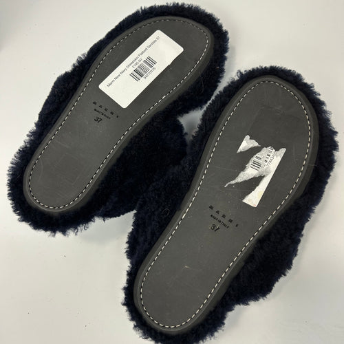 Marni New Navy Sheepskin Flatbed Sandals 37