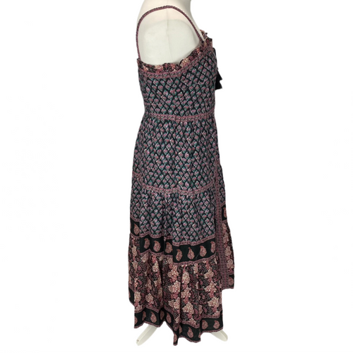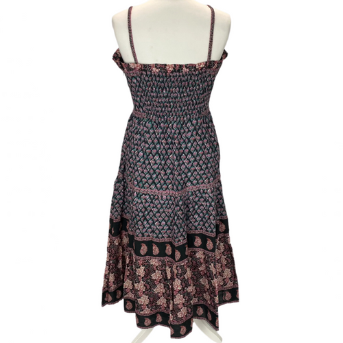 Beautiful maxi dress with flowy skirt and quilted bodice - and comfy elasticated spaghetti straps. Side pockets, shirred back pabel for fit & comfort. Fully lined.