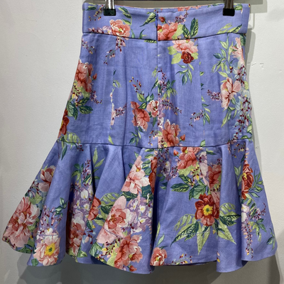 Zimmermann New Sky Blue Floral Linen Mini Skirt XS Sale price£185.00