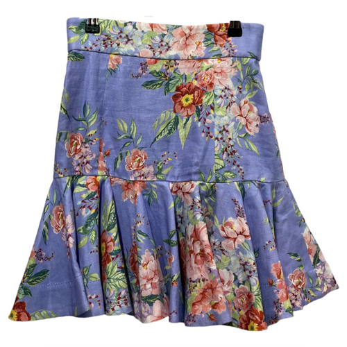 Zimmermann New Sky Blue Floral Linen Mini Skirt XS