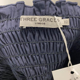 Three Graces London £560 Navy Lena Shirred Cotton Dress S