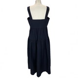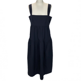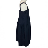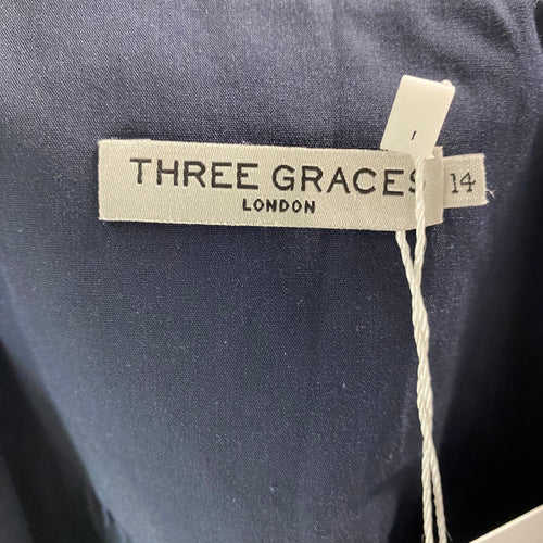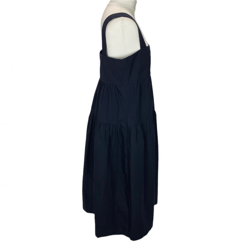 Navy cotton midi dress with shirred bodice by Three Graces London. In perfect pre-loved condition.