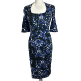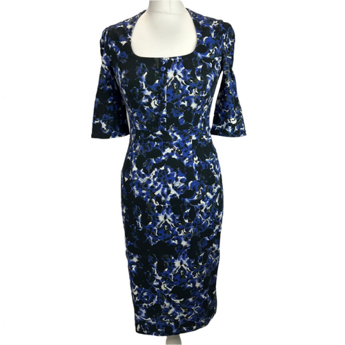 Gorgeous classic Erdem dress in a stretch thick weave cotton so holds it's structure beautifully with the help of a superstretchy lining (see photo) that helps give a very smooth line. False placket the front with three covered buttons. Vintage-look fabric so some of the print looks faded - but that's intentional.