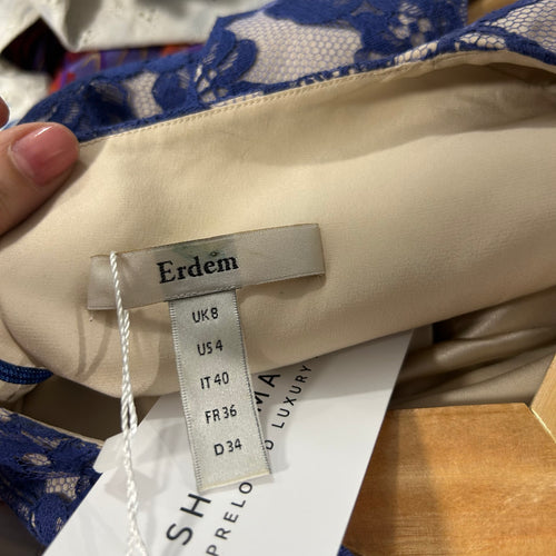 Erdem Indigo Blue Lace Midi Dress XS
