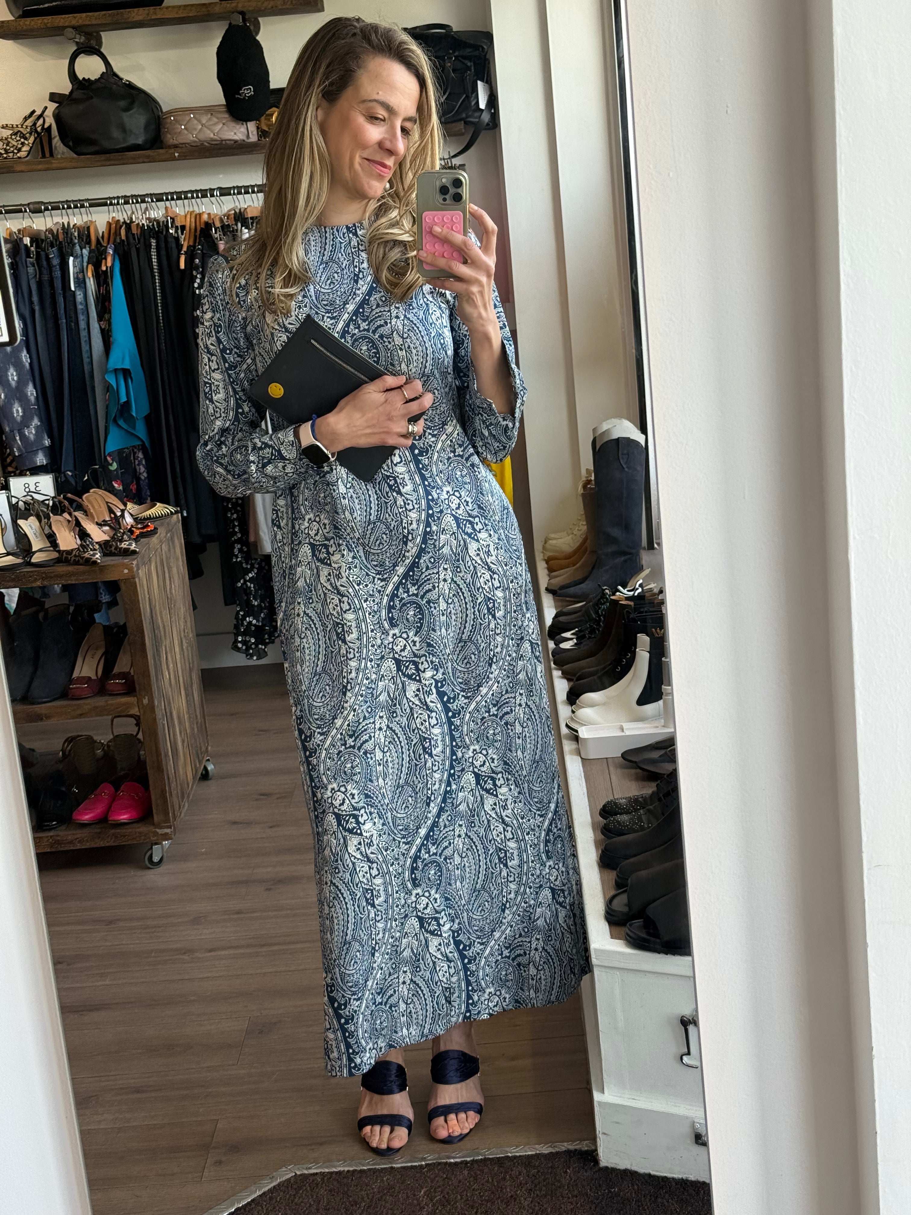 La Double J £650 Navy & White Bandana Print Silk Maxi Dress M